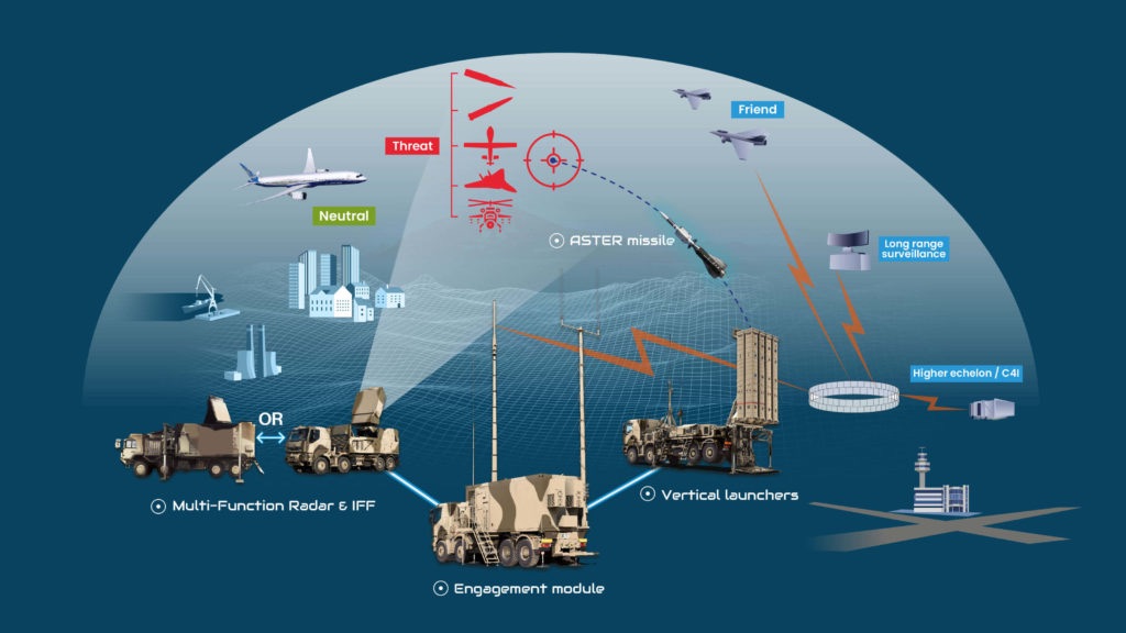SAMP/T NG-systemet kombinerer det nye missilet med en avansert radar, ofte omtalt som en “AESA-radar”. Dette er en type radar som kan overvåke hele horisonten – altså alle retninger – en 360-graders beskyttelse. Med denne teknologien trenger man færre batterier for full dekning, noe som gjør løsningen både mer effektiv og kostnadseffektiv.