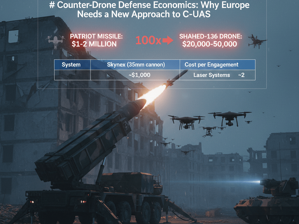 The C-UAS problem is therefore not about capability but about economics: how do you defend against threats that cost 1/100th to 1/1000th of your interceptors?